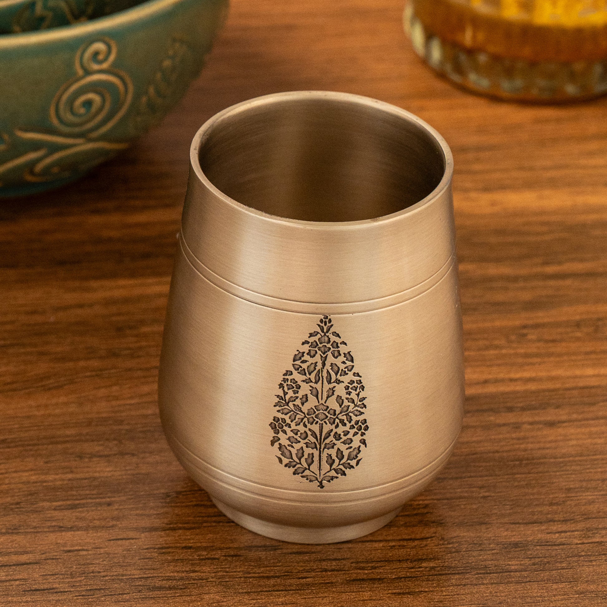 Chinar Kansa Glass with Traditional Hand Etched Chinar Leaf Design